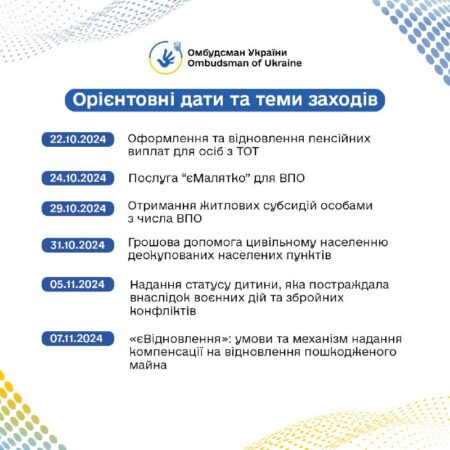 На вас чекають виступи представників міністерств та громадських організацій про практичні можливості у різних сферах. Також ви матимете змогу поставити запитання. На них відповідатимуть працівники Офісу Омбудсмана.