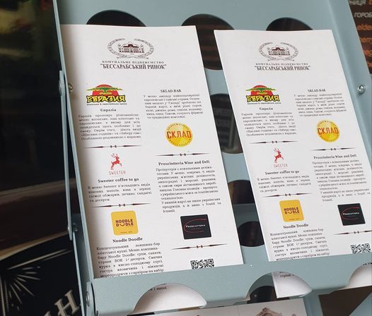 Для удобства гостей Бессарабского рынка на всех входах разместили буклеты с информацией о заведениях на нашей территории, что поможет вам выбрать меню по вкусу и настроению на завтрак, обед и ужин. Сканируйте QR-код на буклете и получайте более детальную информацию.