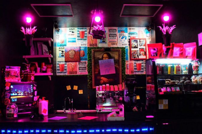 Винтажный телевизор с видеокассетами и видеоиграми в кофейне Coffee and TV на Бессарабке.